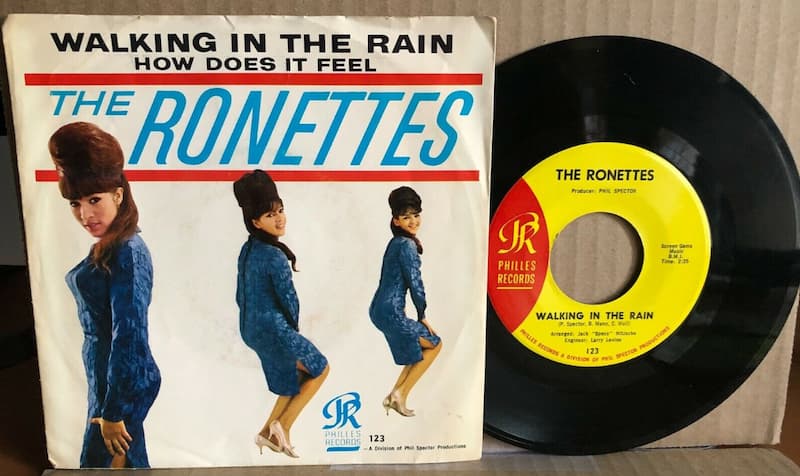 The Ronettes were the first to release “Walking in the Rain”. Their single reached number 23 on the Billboard Hot 100 chart in 1964. The song also reached number three on the R&B Singles Chart in 1965. The single contains sound effects of thunder and lightning, which earned audio engineer Larry Levine a Grammy nomination. Phil Spector produced the record.